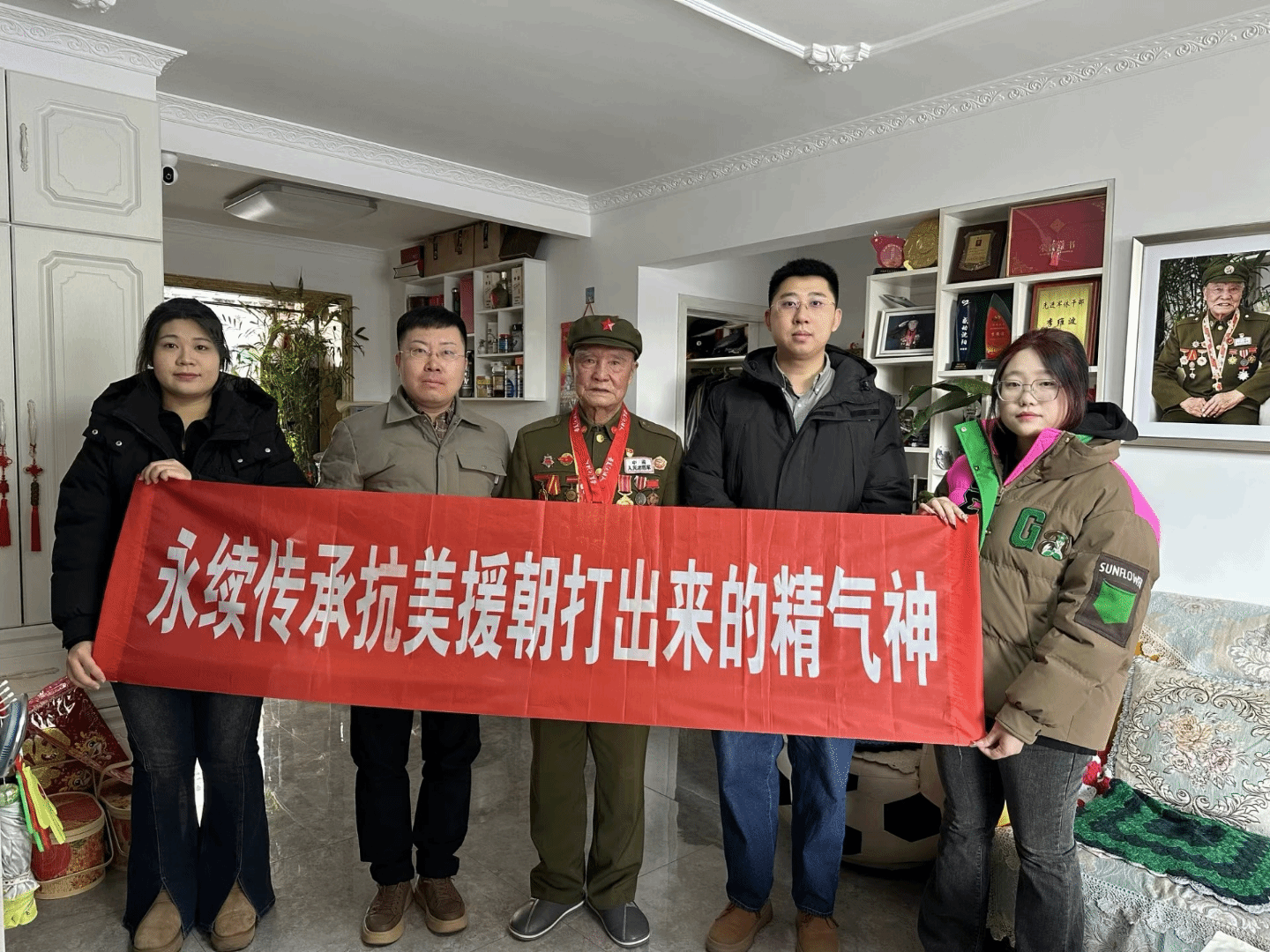 2024年2月3日,春节前夕,走访慰问抗美援朝志愿军老战士,认真聆听老人参加抗美援朝的战斗故事,详细了解他的身体和生活状况,感谢他为国家和人民作出的重大贡献。抗美援朝老兵是民族的英雄,中国的骄傲,正是有志愿军战士的舍生忘死、保家卫国,才换来我们今天的幸福生活。