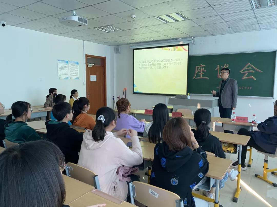 座谈会开始,裴秀丛教授首先给同学们讲解了检验与检疫之间的区别。检验是指对产品的品质、数量、规格等方面的检查,而检疫是指对人员、货物、乘客携带物品等进行检查。接着,裴院长又为同学们介绍了就业情况。卫检专业就业面较广,使同学们对卫检这个专业有了进一步的了解。蒋大力老师结合今年的新冠疫情,为同学们讲述了卫生检验与检疫专业的重要性。鼓励大家努力学习,学到真知识、真本领,成为有本事的人,为祖国的卫生事业奉献出自己的力量。这让同学们对卫生检验与检疫专业有了更深层的理解并充满热爱。