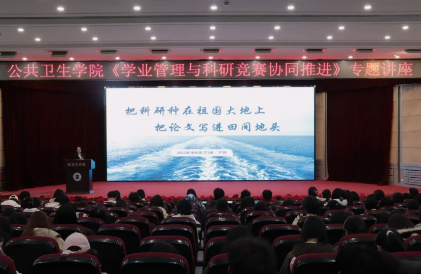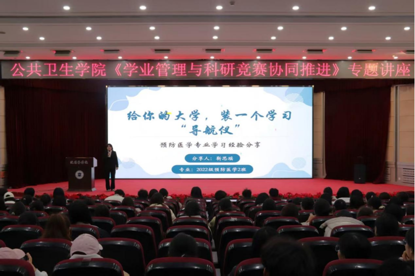 于图书馆第一学术报告厅隆重举办《学业管理与科研竞赛协同推进》专题讲座。本次讲座邀请6位优秀学生代表分享经验,学院学生积极参与,现场学习氛围浓厚。