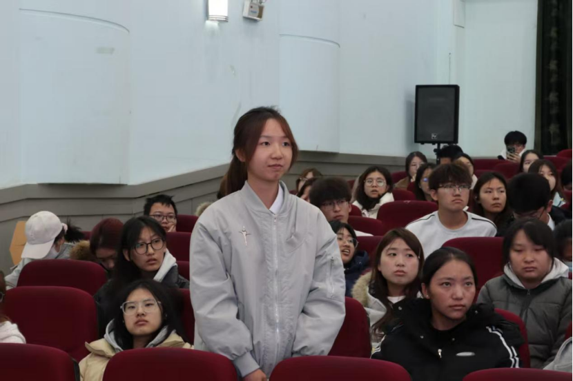 讲座现场,6位优秀学生按序登场,各展所长。专业成绩稳居第一的靳思瑶,分享了斩获各类奖学金及单科状元奖的高效学习方法;发表过SCI文章的王一涵,详细拆解了论文撰写与发表流程及参赛经验;李思其则从英语学习技巧和食品类竞赛备赛两方面展开分享;第十七届“挑战杯”省级竞赛高奖获得者谢雨欣,讲述了跨院合作冲击高水平赛事的实战经历;多次带队获奖的郑一宁,分享了“挑战杯”等赛事的获奖心得与带队经验;尹博则聚焦项目书撰写方法与国创赛省级答辩技巧,给出了针对性指导。6位分享者从不同维度精准赋能,为在场同学提供了系统全面的成长指引,助力大家明晰学业与科研竞赛的协同发展路径。