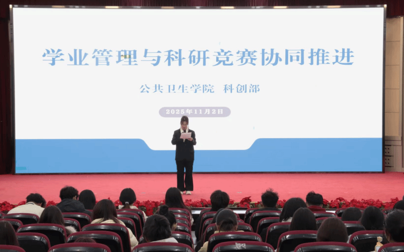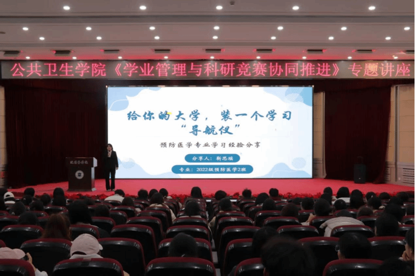 于图书馆第一学术报告厅隆重举办《学业管理与科研竞赛协同推进》专题讲座。本次讲座邀请6位优秀学生代表分享经验,学院学生积极参与,现场学习氛围浓厚。